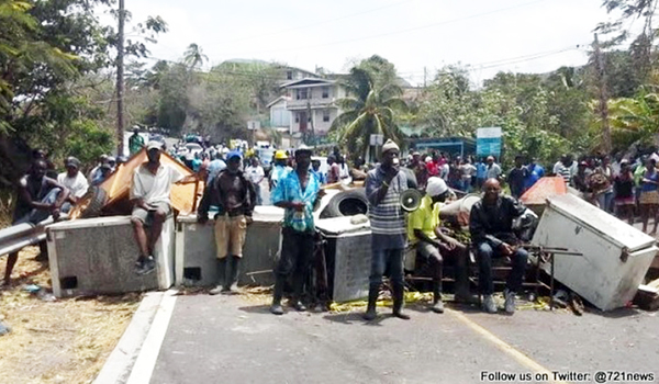 Protesters from the United Workers Party, or UWP, blocked the road to the airport in the Marigot district.