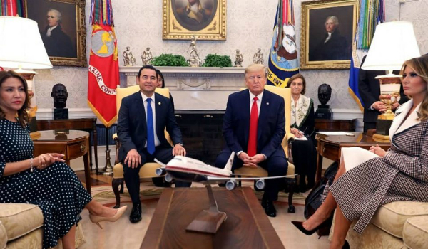 Agradecemos al Presidente @realDonaldTrump y a su esposa, la primera dama @FLOTUS, por tan cálida bienvenida en la Casa Blanca. Hemos tenido una excelente conversación y estamos seguros que seguiremos viendo buenos resultados de la histórica relación entre Guatemala y EE. UU.???? pic.twitter.com/pH2dz6Q49X
