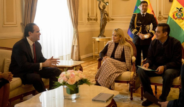 Presidenta @JeanineAnez recibe la visita protocolar de Mauricio Claver-Carone, Asistente Adjunto del Presidente @realDonaldTrump pic.twitter.com/Nie10HqvM5— Min. Presidencia (@MinPresidencia) January 15, 2020