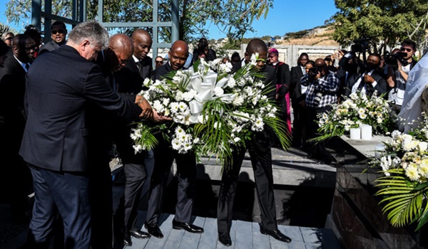 El jefe de Estado, Jovenel Moïse, depósito dos ofrendas florales, una en la comunidad de Saint-Christophe, sitio donde fueron sepultadas en una fosa numerosas víctimas de la catástrofe, y la otra en los jardines del Panteón Nacional haitinano.