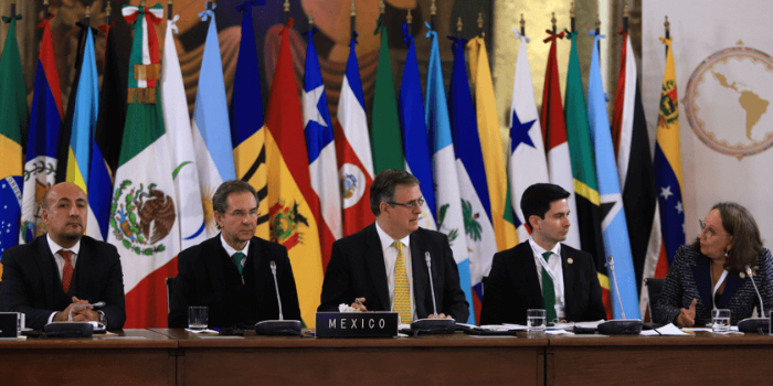 Con una reunión de cancilleres y vicecancilleres de 29 países de los 33 países de América Latina y el Caribe, México asumió el miércoles 8 de enero el compromiso de relanzamiento de la Comunidad de Estados Latinoamericanos y Caribeños (CELAC), con la intención de fortalecer ese organismo y consolidarlo como el instrumento de cooperación más poderoso de la región.