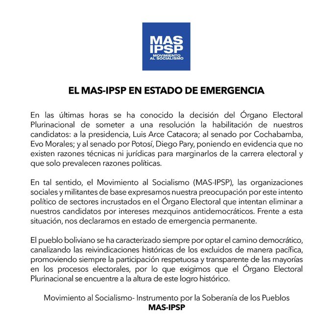 El MAS-IPSP en estado de emergencia