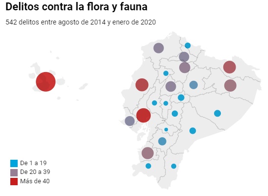 Esa provincia registra 102 de las 542 denuncias recibidas por delitos contra la flora y la fauna, seguida de las provincias de Guayas (53) y de Manabí (42).