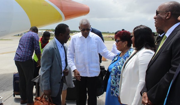 President David Granger welcomes Grenada's Prime Minister Dr Keith Mitchell to Guyana, Wednesday. Prime Minister Mitchell is part of a delegation of CARICOM Heads of Government to meet Elections stakeholders in Guyana.#CARICOM #GuyanaElections pic.twitter.com/yoO903znmr