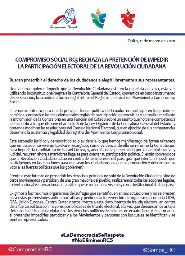 ¿Temen que #RevoluciónCiudadana participe en #Elecciones2021?#CeliAJuicio pic.twitter.com/jH9gurrRs7— Bairon Valle P. (@BaironValleP) March 12, 2020