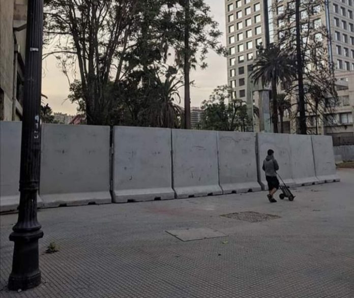 La @Muni_Stgo dio la instrucción de seguir instalando muros de concreto en las calles aledañas a plaza dignidad. Los vecinos exigen que se les respeten sus derechos ¡No más abusos! ¡No más represión! #ChileViolatesHumanRights pic.twitter.com/IaP4dhUVP4