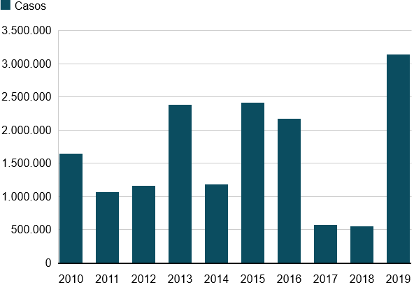 2019 es el año con mayor cantidad de casos registrados en la historia