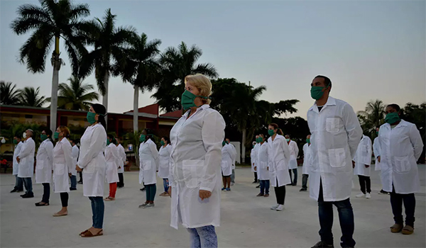 Suman 593 los profesionales de la salud de la isla, que organizados en unas 14 brigadas participan en los esfuerzos para detener la pandemia en 12 naciones, pese a la campaña de desprestigio de Estados Unidos para que se desestime la cooperación de profesionales sanitarios cubanos.