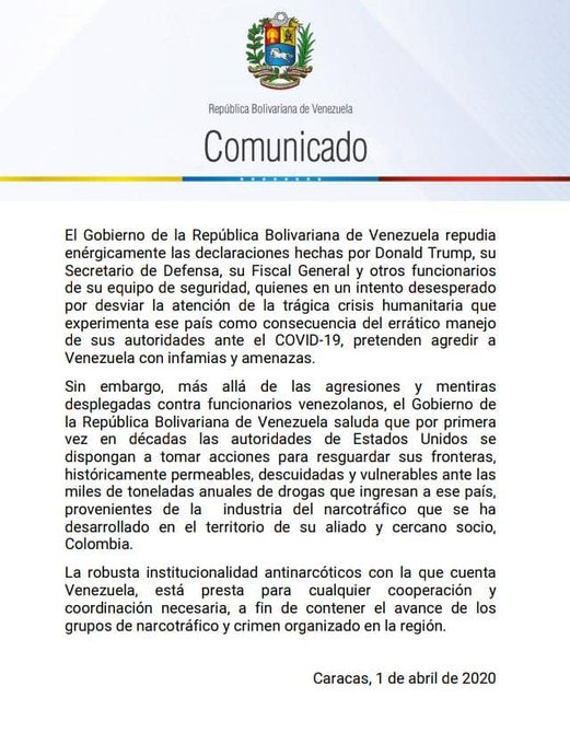 En esa línea, el mandatario enfatizó en que Estados Unidos no permitirá que se aproveche la pandemia del COVID-19 para que los involucrados en el tráfico de drogas “amenacen la vida de los estadounidenses”.