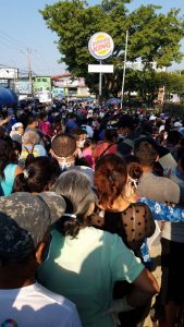 Todos los «protocolos» y medidas establecidas para evitar los contagios por COVID-19 se fueron al traste, las interminables filas de personas que se extendían por cuadras y cuadras, personas adultas mayores, mujeres embarazadas, vendedores informales, empleadas domésticas y población, impulsados por su necesidad de llevar comida a la mesa, todos buscando una solución. Bukele reaccionó, cayó en cuenta de su error y les mandó a cerrar los CENADE.