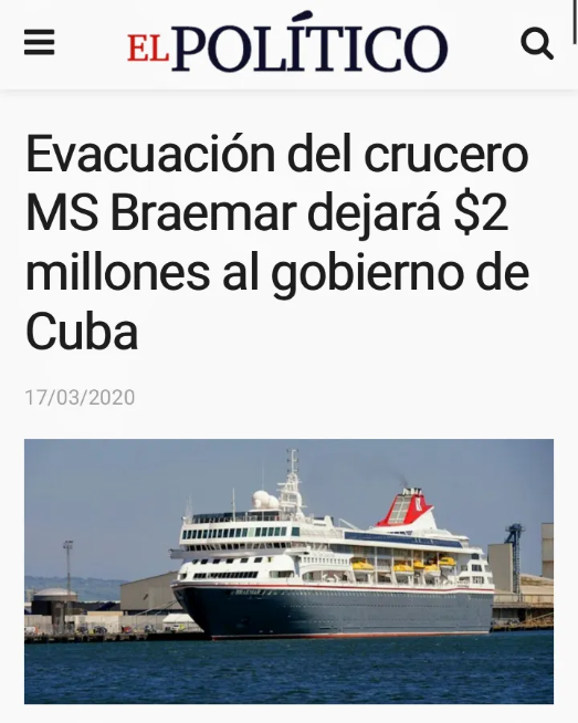 Hace solo unos días varios países del Caribe incluidos los miembros de la Mancomunidad Británica de Naciones, denegaron el atraque del crucero británico MS Braemar que con 682 pasajeros y 381 miembros de la tripulación se encontraba en una situación sanitaria compleja tras registrar cinco casos confirmados de COVID-19 a bordo y 52 personas con síntomas de la enfermedad.