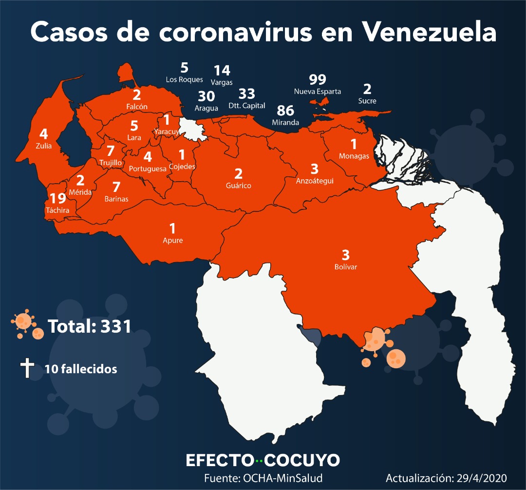 Venezuela llega a 331 casos de COVID-19 este #29Abr
