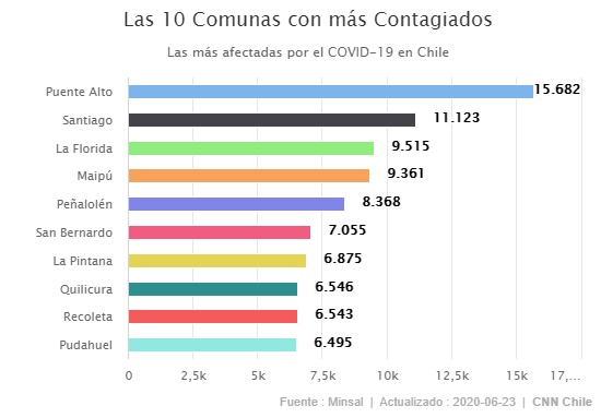 Además, el centro de estudios Espacio Público aseguró, en informe sobre la evolución del coronavirus en Chile del miércoles, que la tasa de contagios en la capital ha disminuido en la última semana. Sin embargo, reveló que los casos han aumentado en las regiones.