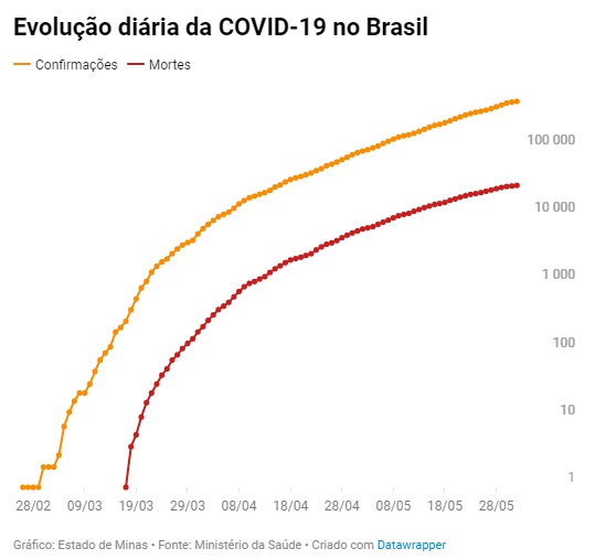 O estado de Minas Gerais contabilizou 10.670 casos e 278 mortes, de acordo com as estatísticas da Secretaria Estadual de Saúde (SES/MG). De domingo até esta segunda-feira, foram 206 novas pessoas infectadas e sete mortes. Até agora, foram 5.341 pacientes recuperados.