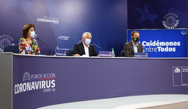 Este domingo, el ministro de Salud, Enrique Paris, flanqueado de los susecratrios Paula Daza y Arturo Zúñiga entregaron un nuevo reporte de contagios por COVID-19 en Chile.