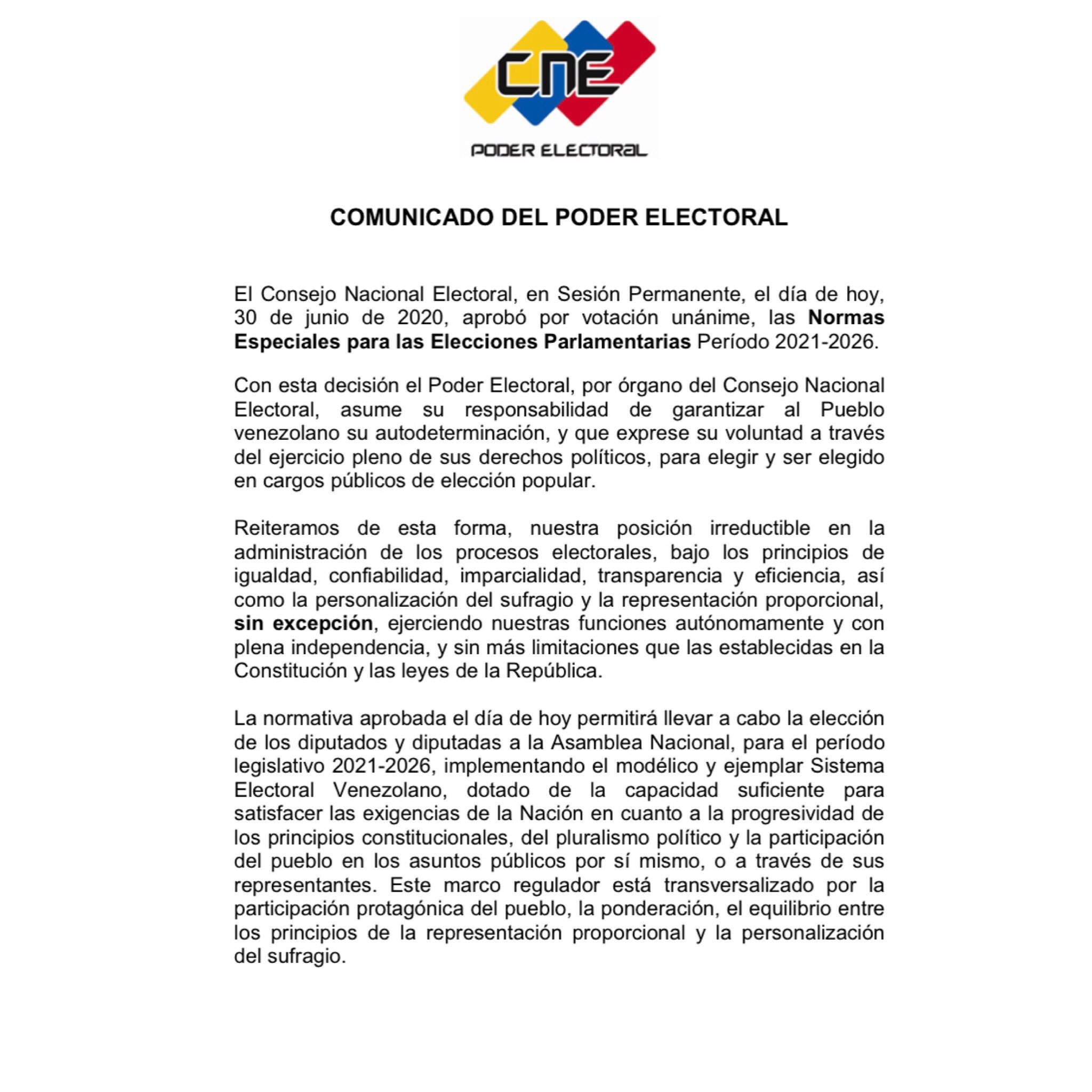 Para ello, aseguran que los miembros del organismo deben ser postulados por el Comité de Postulaciones Electorales y designados por la Asamblea Nacional»; un cronograma que garantice el normal funcionamiento del proceso electoral; y una «campaña electoral equitativa».