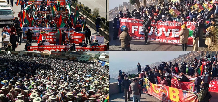 Desde tempranas horas, la movilización denominada por ‘Gran Marcha por la Salud, la Educación, la Estabilidad Laboral y la Vida’, concentró a maestros urbanos, rurales, padres de familia, mineros, sector informal, entre otros en la Ceja de El Alto cerca al Multifuncional otrora lugar de grandes concentraciones. Esta vez no fue la excepción y centenares de afiliados descendieron a la sede de gobierno, de manera disciplinada y con los cuidados respectivos.
