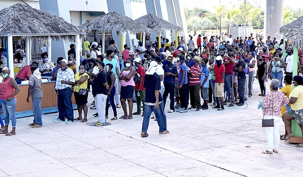 Bahamas: largas filas de personas desempleadas para cobrar cheque de asistencia