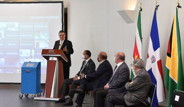 Con la presencia virtual de autoridades de países caribeños, del gobernador de San Luis Potosí, Juan Manuel Carrera López y del senador Héctor Vasconcelos Cruz, el canciller recordó que, ante la llegada de la pandemia a México, el presidente Andrés Manuel López Obrador instruyó a la SRE a importar ventiladores e insumos necesarios para cerrar el déficit de ese y otros insumos médicos. Esto se hizo principalmente en los mercados estadounidense y chino.