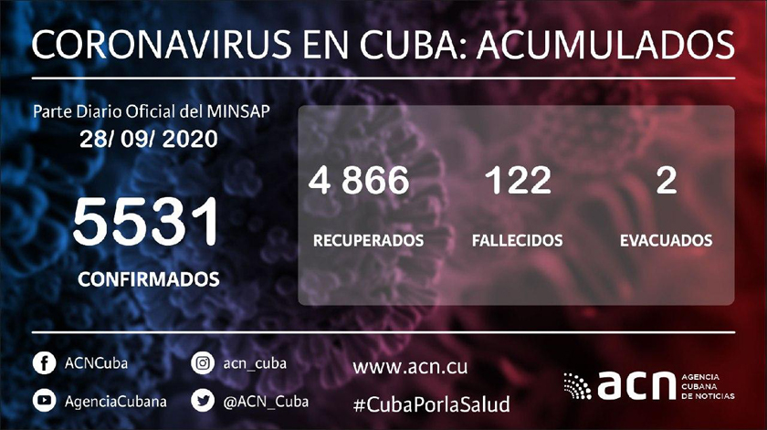 El Ministerio de Salud Pública de Cuba reportó hoy 48 nuevos casos positivos en coronavirus SARS-CoV-2, causante de la COVID-19, para un total de cinco mil 531 contagiados en el país, el 88 por ciento de ellos recuperados.