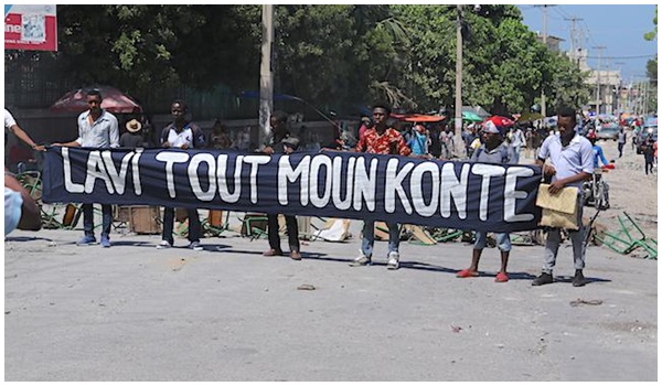 Munis d’une banderole, sur laquelle est imprimée Lavi tout moun konte (« Toutes les vies comptent »), les étudiantes et étudiants de la Faculté de droit et des sciences économiques (Fdse) de l’Université d’État d’Haïti (Ueh) commençaient à se mobiliser, aux environs de 11:00 am (15:00 gmt), à la rue Oswald Durand.