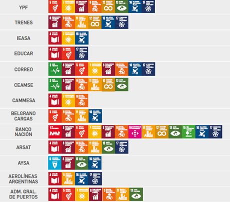 Es interesante ver la diferente contribución que hacen las empresas, destacándose el desempeño de empresas como el Banco de la Nación Argentina (13 ODS), YPF y el Correo Argentino (8 ODS).