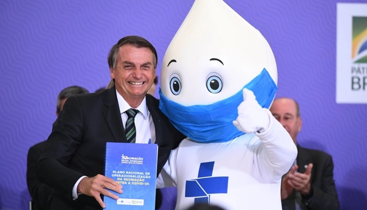 Bolsonaro recebeu o plano de vacinação das mãos de Pazuello e da coordenadora do Programa Nacional de Imunizações, Francieli Fantinato. Posou para foto ao lado do Zé Gotinha, mascote da vacinação no país. Assista (40min45s):
