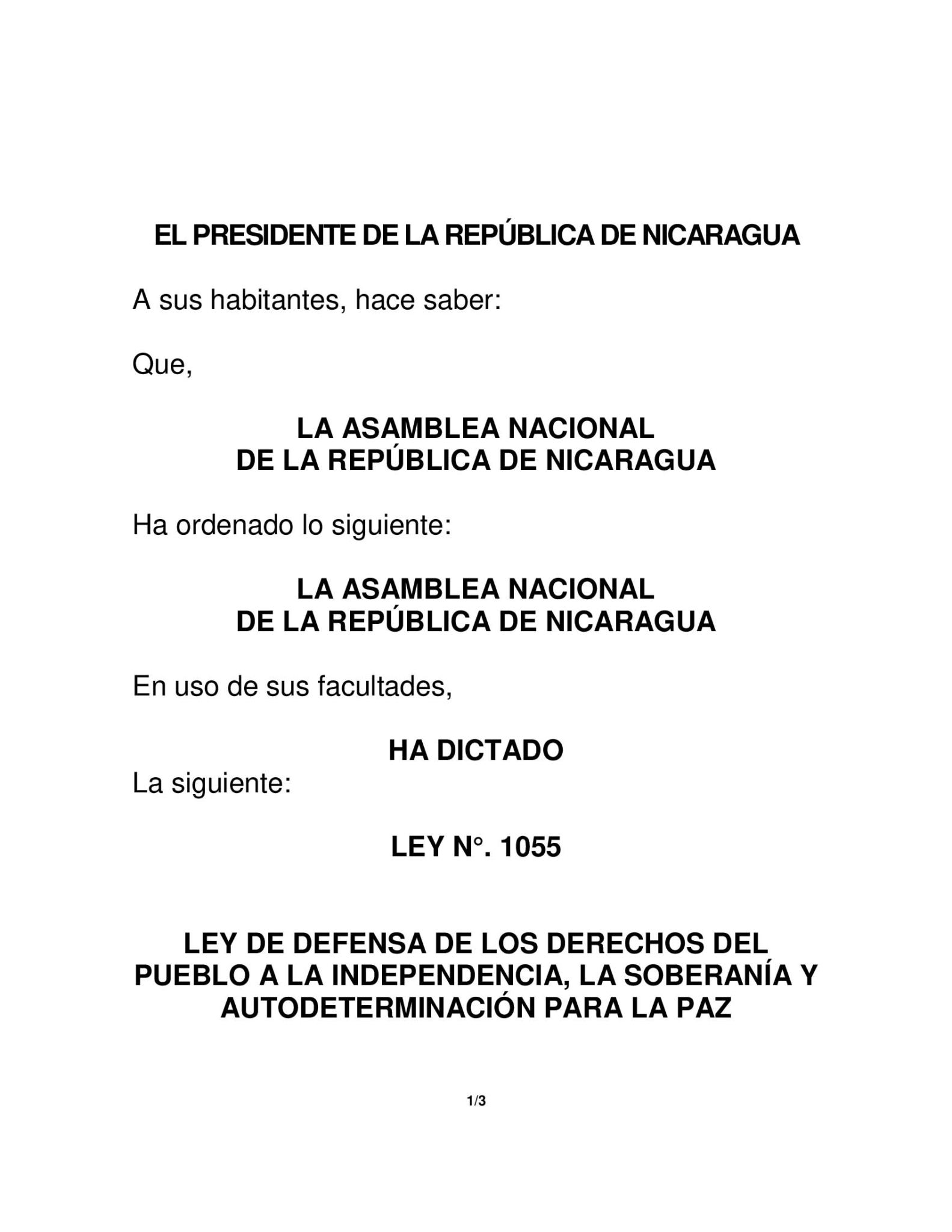En sesión extraordinaria la Asamblea Nacional aprobó este lunes la Ley de Defensa de los Derechos del Pueblo a la Independencia, la Soberanía y Autodeterminación para la Paz, cuyo objetivo es hacer prevalecer el principio constitucional de la independencia, soberanía y autodeterminación nacional, así como la no injerencia en los asuntos internos del pueblo nicaragüense.