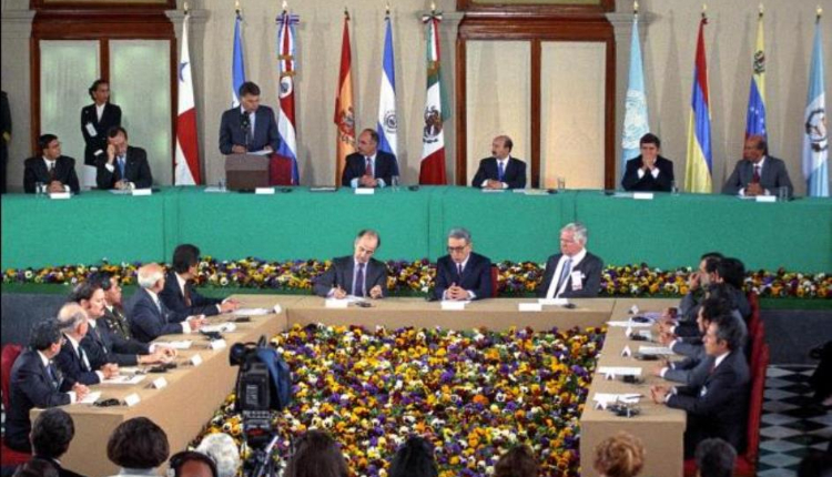 En 1996, luego de 36 años de guerra interna, las guerrillas de Guatemala aglutinadas en la Unidad Revolucionaria Nacional Guatemalteca (URNG) firmaron lo que se conoce como Acuerdos de Paz con el Estado/Ejército de Guatemala con frondosas promesas de paz y desarrollo para el país.