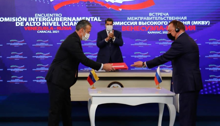 Desde Miraflores, donde las delegaciones rusas y venezolanas de la Comisión Intergubernamental de Alto Nivel Rusia-Venezuela (CIAN), presididas por el vicepremier ruso, Yuri Burísov, y el ministro Tareck ElAissami, respectivamente, firmaron 12 grandes documentos de proyectos en ámbitos alimentario; de salud, medicamentos, vacunas, técnico-militar, económico y petrolero, entre otros, el Jefe de Estado agradeció a la gran Rusia por estar al frente de un nuevo mundo pluripolar y pluricéntrico que ha permitido a Venezuela protegerse en esta pandemia.