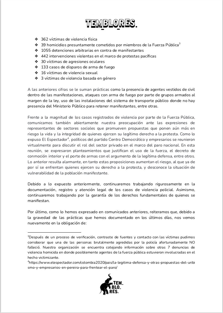 De igual manera el Tribunal, bajo la firma del magistrado Borja, se le pidió al Comité Regional del Paro Nacional, a la Minga Indígena, los estudiantes y los mandatarios de Cali y municipios de Yumbo, Candelaria, Jamundí y Palmira, además de la Gobernadora del Valle del Cauca, garantizar los corredores humanitarios en la región.