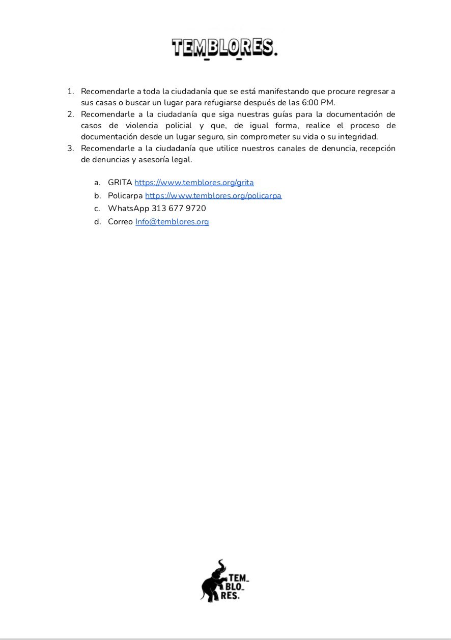 “Para iniciar, quiere ser enfática esta magistratura que sería totalmente arbitrario, absurdo e impensable justificar el uso de armas de fuego con el propósito de levantar los bloqueos de la ciudad. No se puede justificar el uso excesivo de la fuerza bajo ningún punto de vista, la fuerza legítima, tiene este carácter, cuando se enmarca dentro del ámbito de la Constitución y la Ley”, señaló el magistrado Omar Édgar Borja Soto, quien firmó la auto.