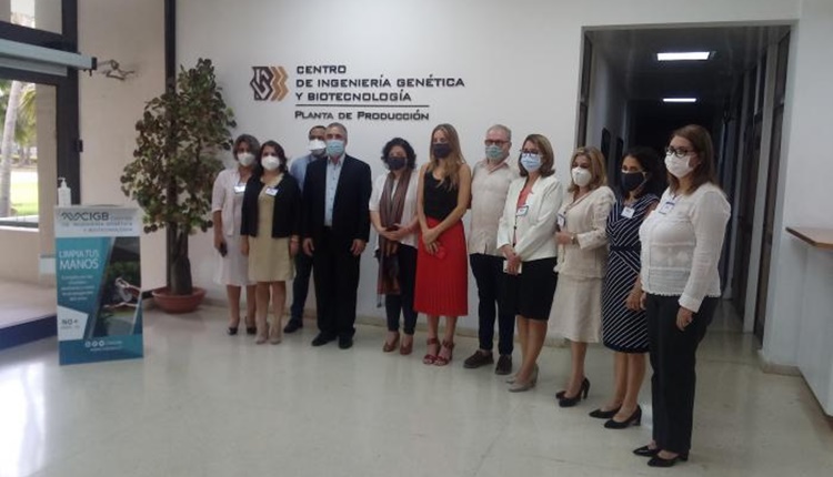 En el intercambio, que contó con la presencia del doctor José Ángel Portal Miranda, ministro de Salud Pública, y las viceministras, Anayansi Rodríguez, de Relaciones Exteriores, y Deborah Rivas, de Comercio Exterior y la Inversión Extranjera, respectivamente, la delegación visitante conoció del favorable impacto de los 27 productos cubanos en el tratamiento contra la COVID-19 y del avance de los ensayos clínicos de los candidatos vacunales Soberana 02 y Abdala.