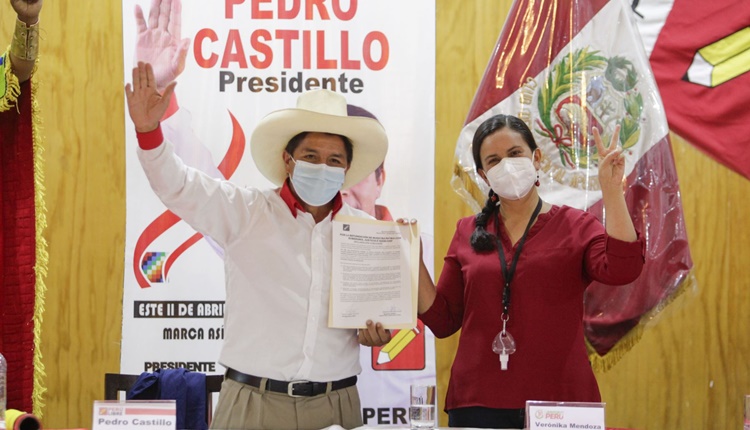 El candidato presidencial de Perú Libre, Pedro Castillo, y su excontendora de Juntos por el Perú, Verónika Mendoza, firmaron ayer por la tarde una declaración conjunta de respaldo a la postulación del primero, de cara a la segunda vuelta de las Elecciones Generales de Perú de 2021, donde enfrentará a Keiko Fujimori.