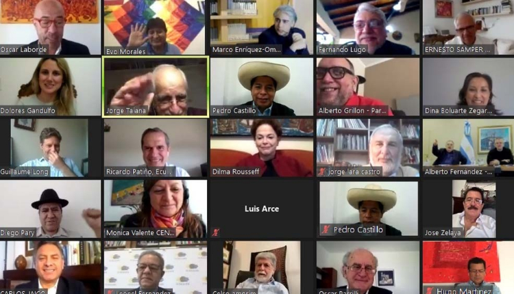 Junto a Castillo, su compañera de fórmula, los presidentes en ejercicio y los exmandatarios de la región, en la videoconferencia también participaron los excancilleres Celso Amorim (Brasil), Ricardo Patiño y Guillaume Long (ambos de Ecuador), Jorge Lara Castro (Paraguay) y Diego Pary (Bolivia).