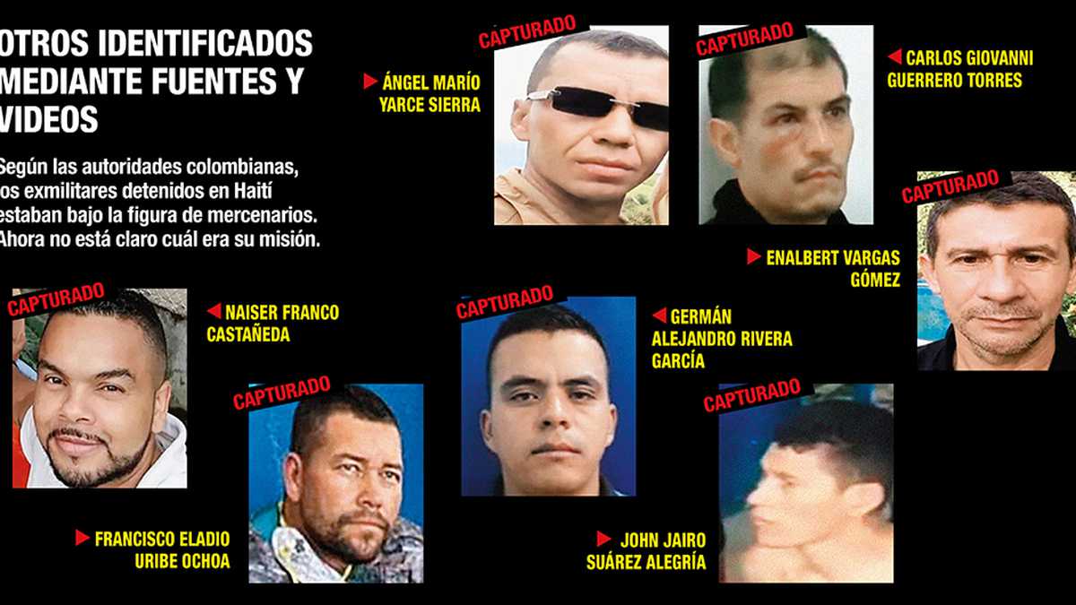 Los otros exmilitares que se encuentran en poder de las autoridades de Haití, bajo vigilancia especial por ser piezas clave en las investigaciones, son los exsoldados profesionales Víctor Albeiro Pineda, Manuel Antonio Grosso, John Jairo Ramírez, Alejandro Giraldo Zapata, Naiser Franco Castañeda, Enalbert Vargas Gómez, John Jairo Suárez Alegría y el sargento viceprimero Ángel Mario Yarce Sierra. De acuerdo con fuentes del Ejército, estos exmilitares cuentan con una experiencia de por lo menos 20 años en la fuerza.