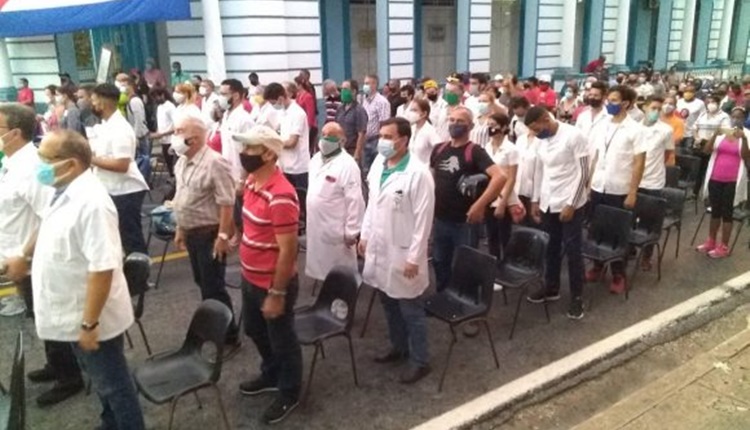 Bajo el cumplimiento de las medidas higiénico-sanitarias, también asisten al acto representaciones de la Federación Estudiantil Universitaria, empresas como MINTUR y Palmares, la Federación de Mujeres Cubanas, los Comité de Defensa de la Revolución, entre otros.