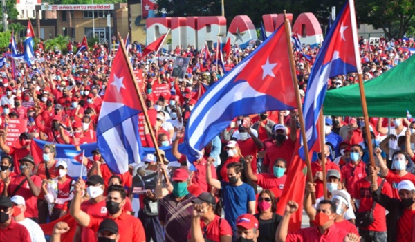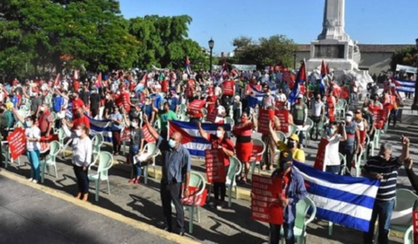 Con el cumplimiento de las medidas higiénico-sanitarias, los miles de habaneros que acudieron reclamaron el levantamiento del bloqueo económico, comercial y financiero de Estados Unidos y el cese de los intentos de desestabilización.
