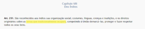 Argumentação a favor da tese utiliza a conjugação do verbo “ocupar” em tempo presente na Constituição Federal para defender que os indígenas só teriam direito às terras onde estavam à época da promulgação do texto