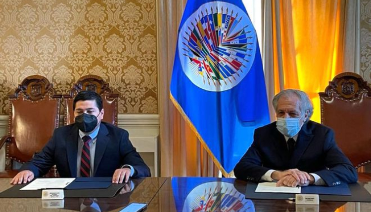 El secretario general de la OEA, Luis Almagro; y el representante interino de Paraguay ante el ente regional, Raúl Martínez Villalba, firmaron el acuerdo.