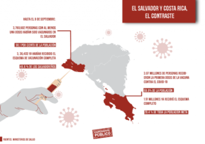 El Salvador y Costa Rica se aproximan al 50 % de cobertura total de vacunación contra el covid-19 y aceleran su inmunización.