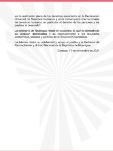 Los países miembros del @ALBATCP rechazan la acción injerencista de los EEUU en contra de la República de Nicaragua al promulgar el 10 de noviembre de 2021, la “Ley para Reforzar el Cumplimiento de Condiciones para la Reforma Electoral en Nicaragua” (RENACER).