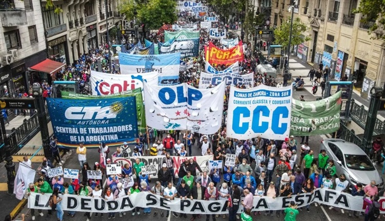 Mientras en el Congreso, el plenario de comisiones de Presupuesto y Hacienda y de Finanzas de la Cámara de Diputados debatía el acuerdo con el organismo internacional, en la calle se realizó una manifestación para rechazarlo. La consigna que unificó el reclamo fue: “Las deudas se pagan, las estafas no”. Las columnas salieron desde Avenida de Mayo y 9 de Julio hasta el Parlamento y estuvieron, entre otras, la CTA Autónoma, la Corriente Clasista y Combativa (CCC); la Unión de Trabajadores de la Tierra (UTT); Pymes para el Desarrollo Nacional; la Organización Libres del Pueblo (OLP); Unidad Popular; Sobreranxs; Partido del Trabajo y del Pueblo (PTP); Causa Nacional y el Partido Comunista (PC).
