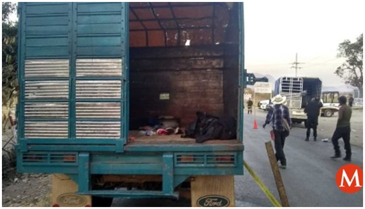 El camión se volcó sobre un barranco, provocando que varias personas salieran proyectadas hacia el piso. Derivado del accidente al menos dos migrantes murieron.