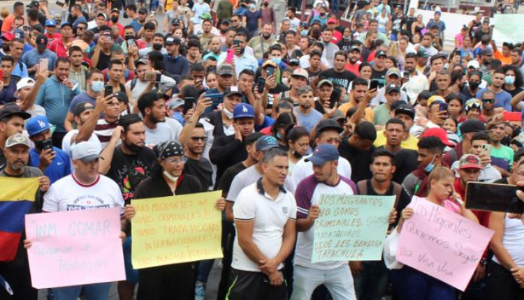 Cerca de 1,300 migrantes, en su mayoría de Venezuela, Nicaragua, Honduras, El Salvador, Guatemala y Haití, se manifestaron este jueves (26) en la frontera sur de México para exigir que el Gobierno les otorgue documentos para que puedan transitar hacia Estados Unidos.