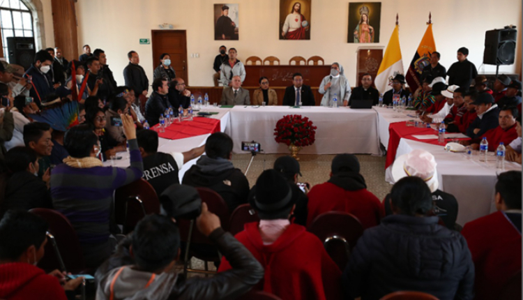 La reunión se desarrolló en el Liceo Matovelle desde alrededor de las 15:00 de este lunes 27 de junio del 2022. Este encuentro se dio con mediación de la Iglesia. Participaron el líder de la Conaie, Leonidas Iza; el ministro de Gobierno, Francisco Jiménez; la presidenta del CNE, Diana Atamaint; el presidente de la Asamblea, Virgilio Saquicela, así como los líderes de la Feine y Fenocin. El presidente Guillermo Lasso no acudió al encuentro.