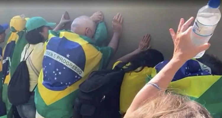 De mãos dadas ou ajoelhados suplicando em frente ao quartel, os apoiadores de Jair Bolsonaro (PL) rezaram pai-nosso e ave-maria. Alguns se emocionaram e choraram.