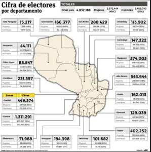 Este domingo 4.873.706 personas estarán habilitadas para votar, tanto en Paraguay como en el exterior (Argentina, España y EE.UU.) en las internas partidarias simultáneas para elegir candidatos a presidente, senadores, diputados, gobernadores y concejales departamentales, con miras a los comicios de abril de 2023. La ANR y otros partidos también renovarán autoridades.