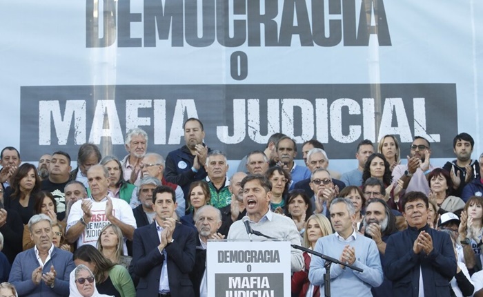 Kicillof, ovacionado por el público, fue el último en hablar. Se acercó al estrado y remarcó que el Poder Judicial «no da respuestas a nuestro pueblo». «Este Partido Judicial también impide que se cumplan los derechos más básicos. Nos afecta con sus fallos todos los días. Estos jueces nunca dijeron nada contra el préstamo del FMI que se tomó ilegalmente y nunca se enfrentaron a los poderes concentrados», dijo y sentenció: «No son independientes. Son un instrumento de los poderes concentrados». En esa línea, el gobernador agregó que «este año se va a elegir de nuevo entre la derecha y los derechos. Con esta Corte nuestros derechos no están garantizados. Vamos a llenar las urnas de votos y vamos a romper la proscripción contra CFK».