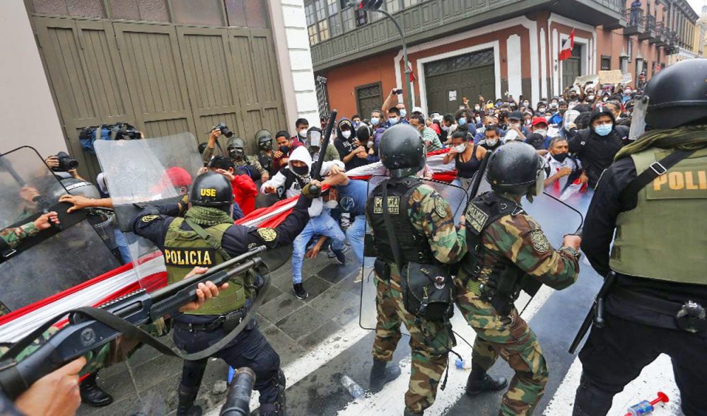 Una de las personas golpeadas la víspera por la Policía en la plaza Dos de Mayo, el dirigente de la Central Unitaria de Lucha (CNUL), Germán Altamirano, consideró que la brutalidad de la Policía obedece a órdenes que recibe del Ejecutivo, el Congreso y los mandos militares. Aseguró que se trata de una estrategia para amenazar a los manifestantes.